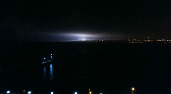 En el video se puede ver cómo de un momento a otro aparece el resplandor en el cielo, resaltando el humo generado por los pirotécnicos.Tras la aparición de esta misteriosa luminosidad, los usuarios de Twitter y Facebook aseguraron que el alumbrado público de esta zona del Callao dejó de funcionar.